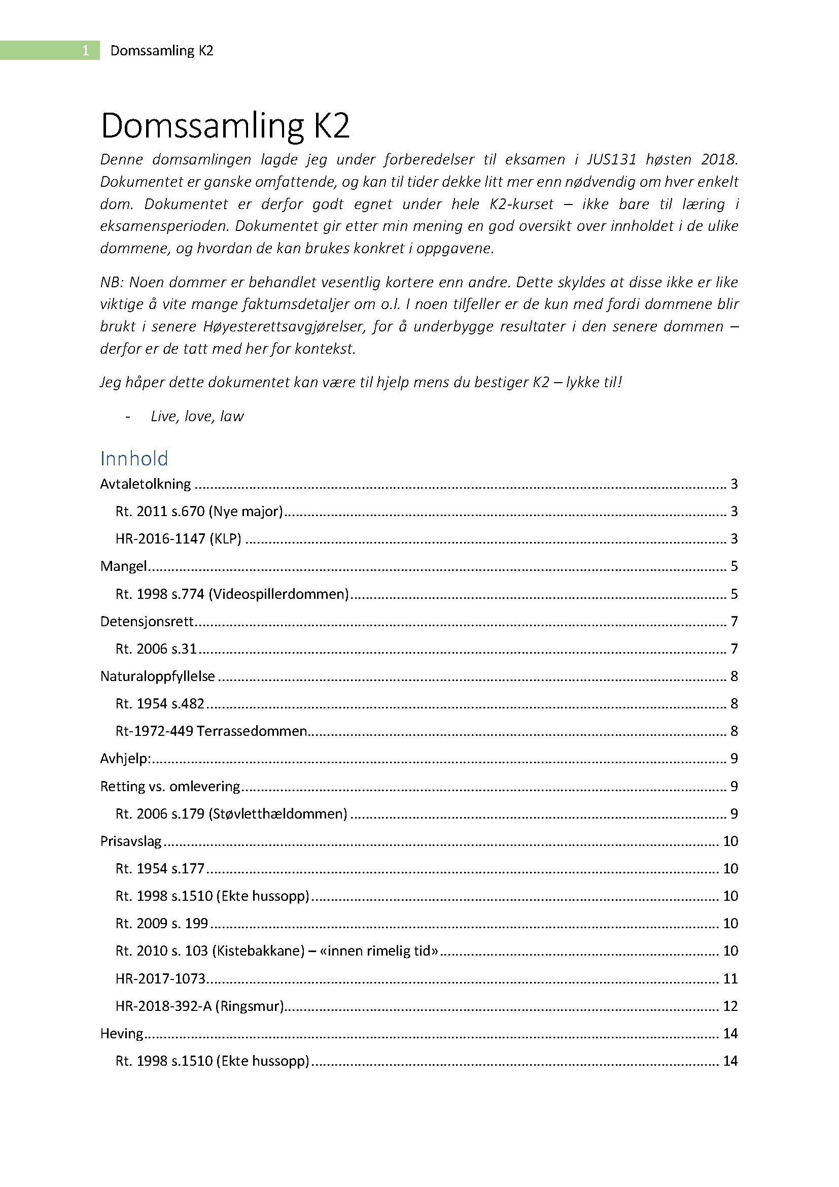 Domssamling Til Kontraktsrett 2 Jus131 Uib Hosten 2018 Med Inndeling Etter Tema Filefora No
