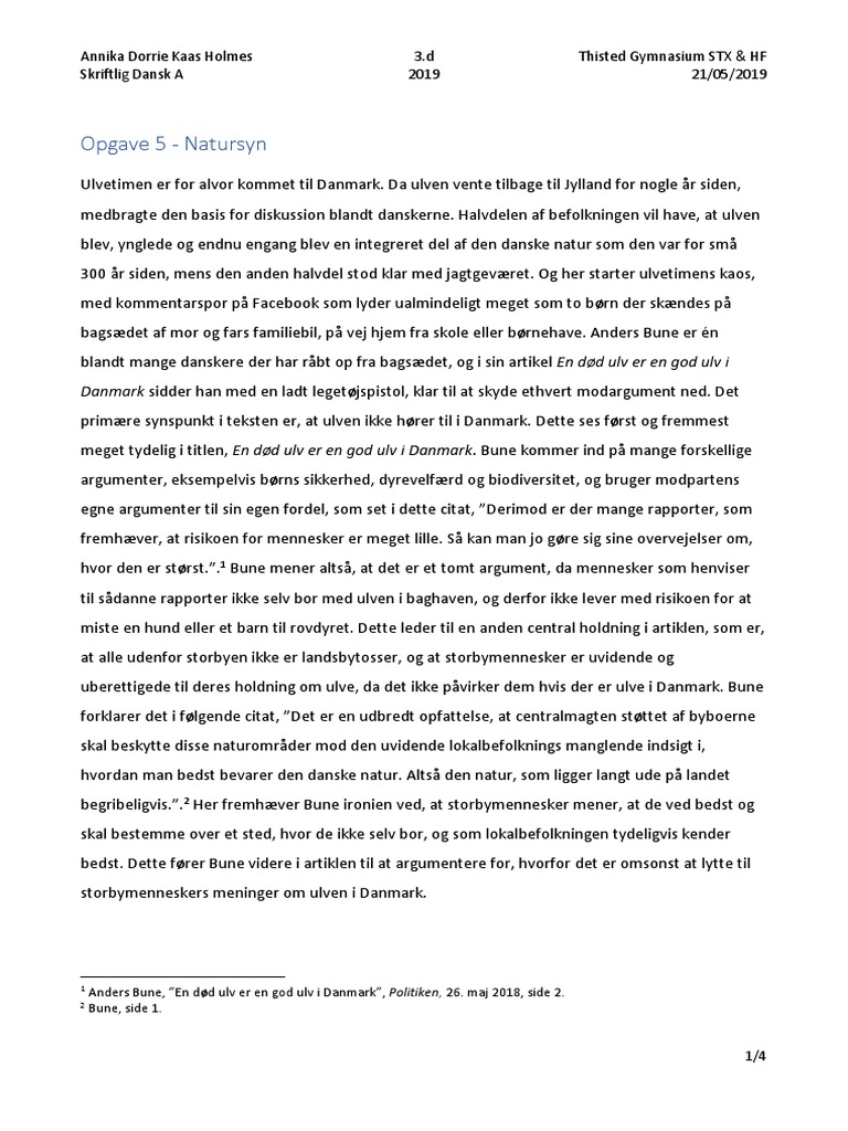 Skriftlig Eksamen Dansk A 2019 Opgave 5 Natursyn Pdf