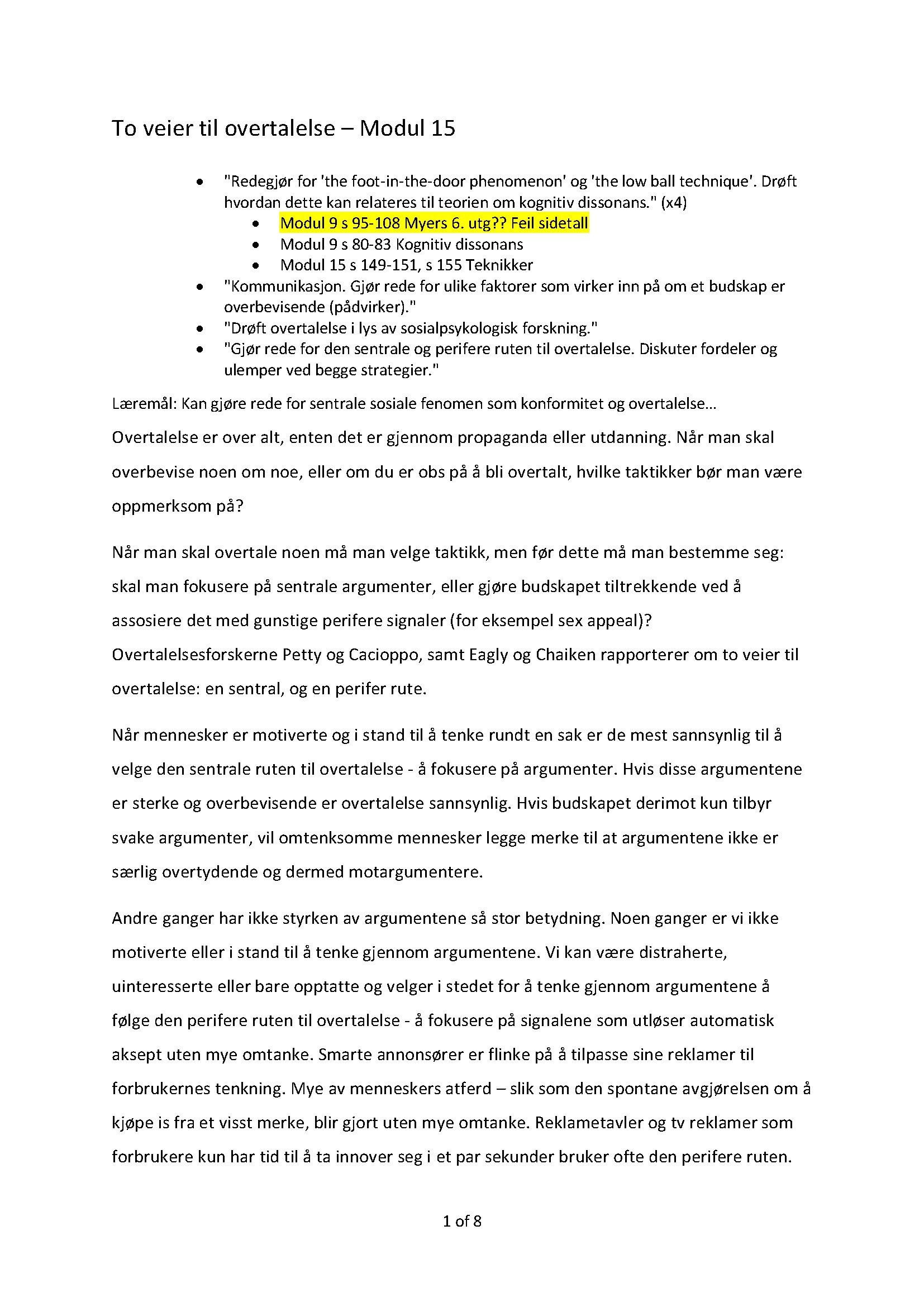 Psyk112 Sosialpsykologi Sammendrag Av Overtalelse Modul 15 Tidligere Eksamensoppgaver Filefora No