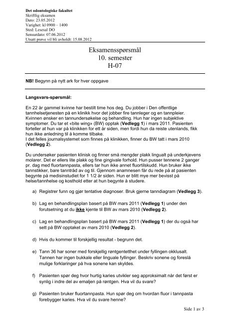 Eksamen Odsem10a 2012 Var Pdf Det Odontologiske Fakultet