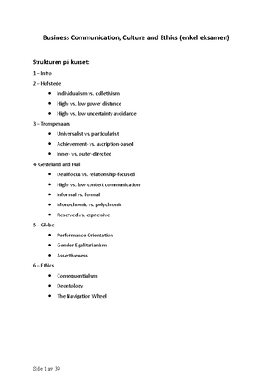 Sammendrag Business Communication Business Communication Culture And Ethics Enkel Eksamen Studocu